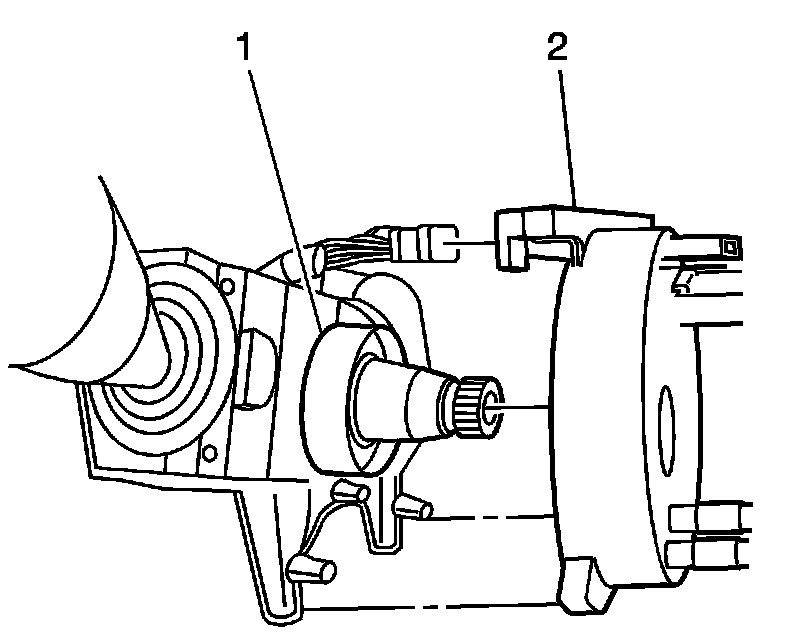 3. Slide the new SIR coil (2) onto the steering shaft assembly (1).