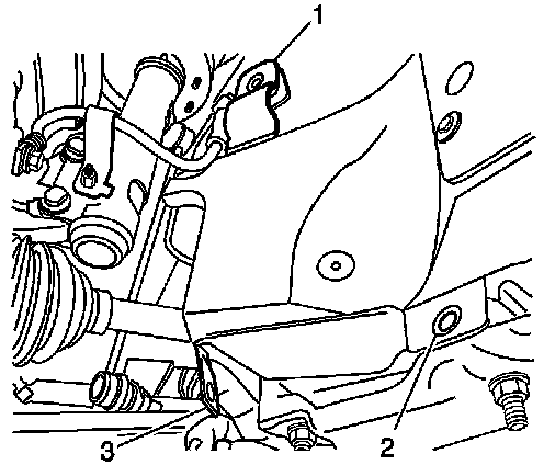 13. Torque the transmission brace bolt (4) to 50 Nm (37 lb-ft).