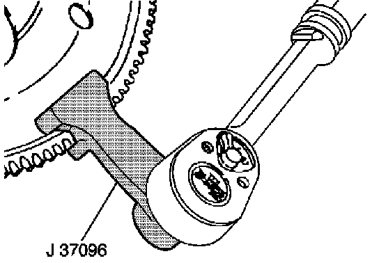 5. Install the flywheel holder (J 37096). Use a pry bar to hold the flywheel in place if the J 37096 tool is not available.