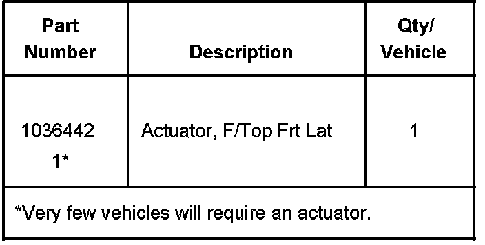 If the inspection determines that the actuator requires replacement, contact the GM Product Quality Center (PQC) to order a replacement actuator. DO NOT ORDER AN ACTUATOR FROM GMSPO. Please be prepared with the VIN, mileage, roof label serial number, and dealer code prior to contacting the PQC.