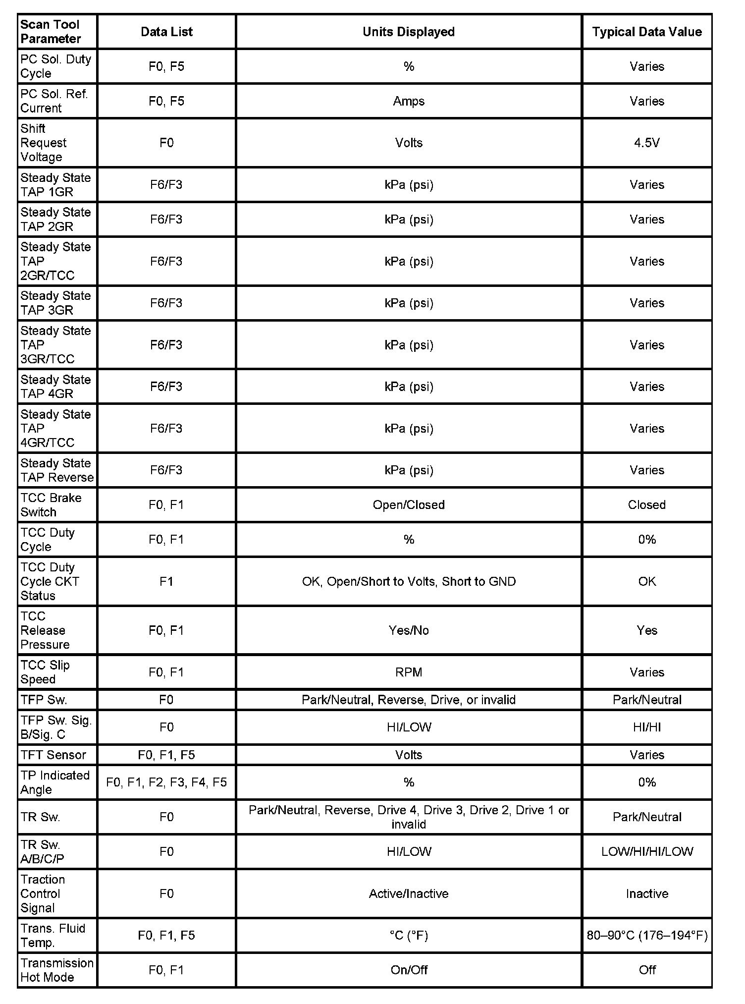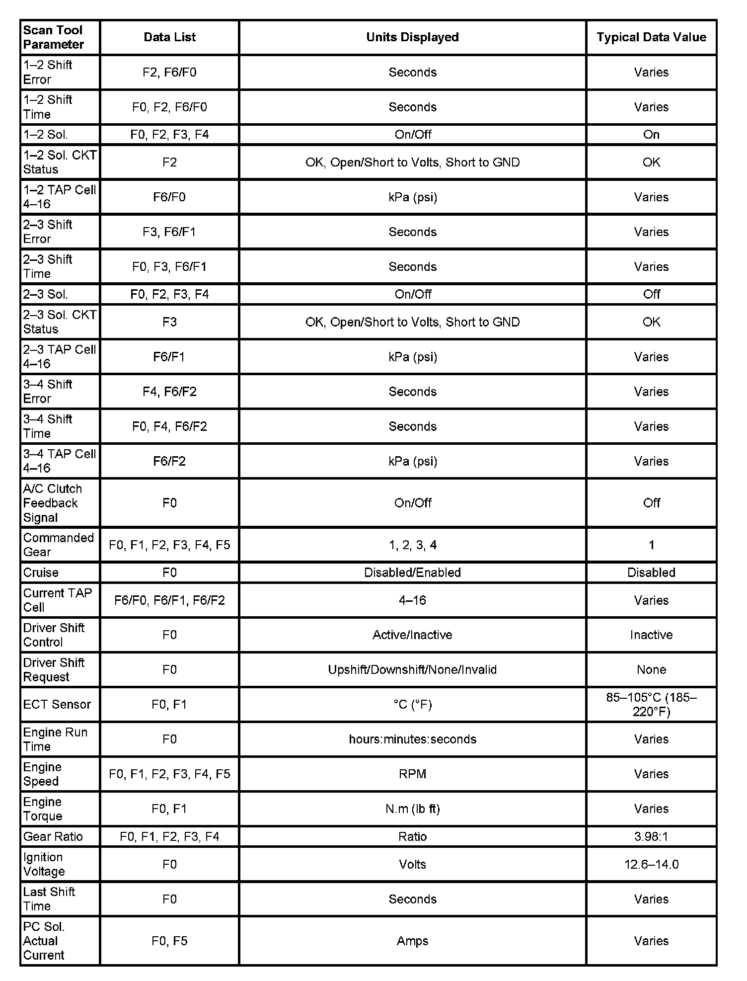Only the parameters listed below are used in this information for diagnosing. If a scan tool displays other parameters, the values are not recommended by General Motors for use in diagnosis.