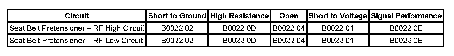 The seat belt pretensioner - RF high and/or low circuit is short to voltage for 120 milliseconds.