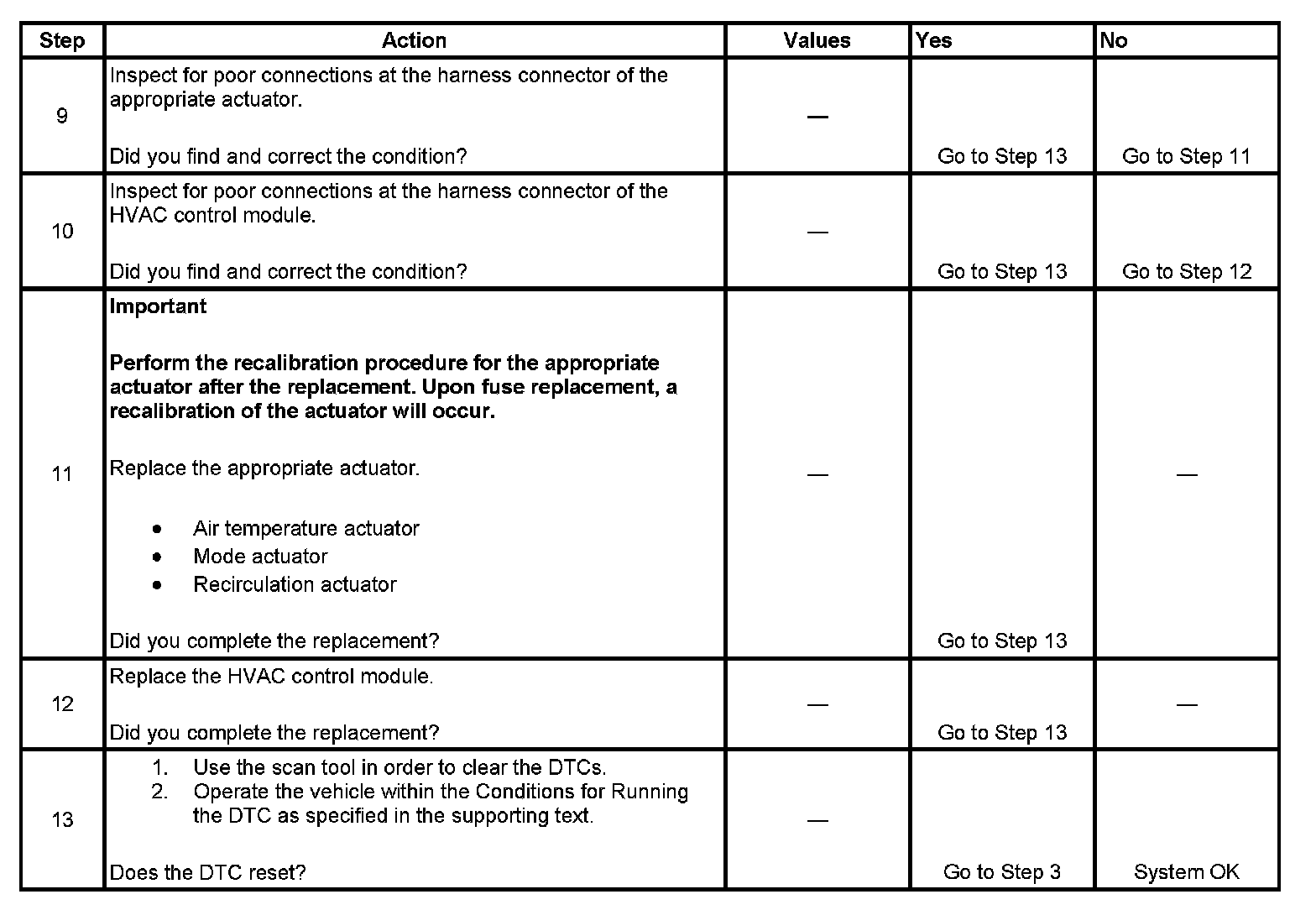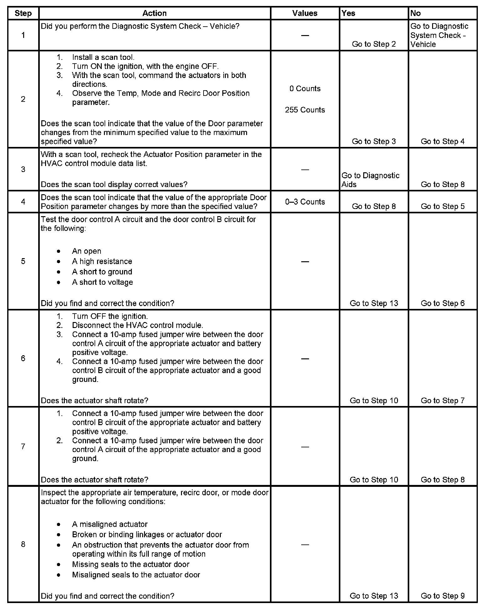 2. This step verifies that the HVAC control module is able to command the appropriate actuator through its full range of motion.