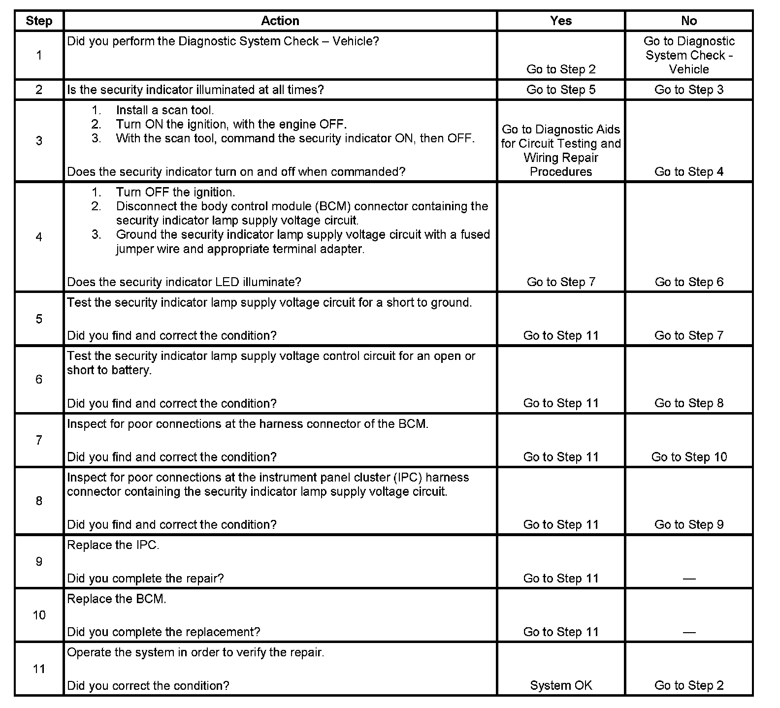 - Security indicator output is disabled until next ignition cycle.