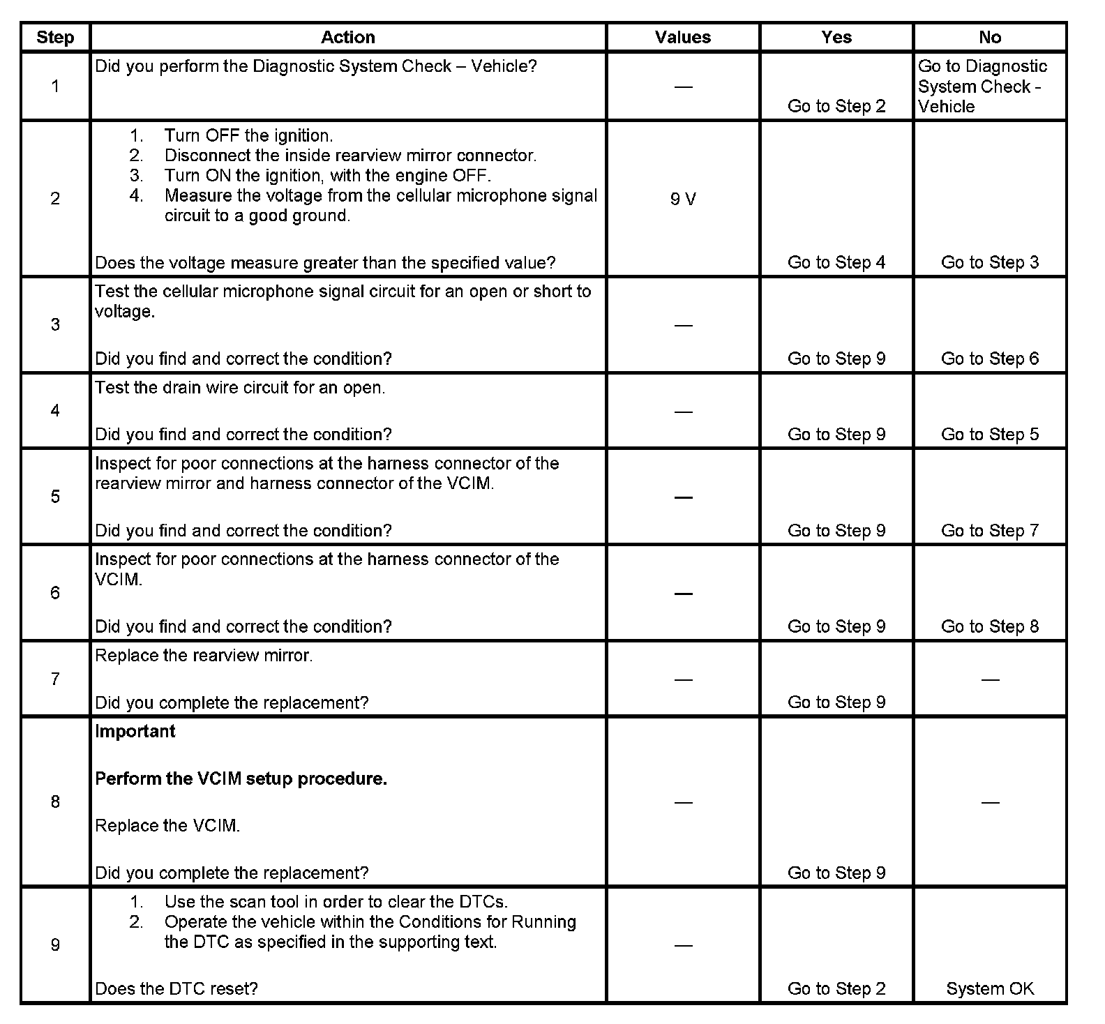 - The VCIM detects an open in the drain wire circuit or a short to voltage in the cellular microphone signal circuit.
