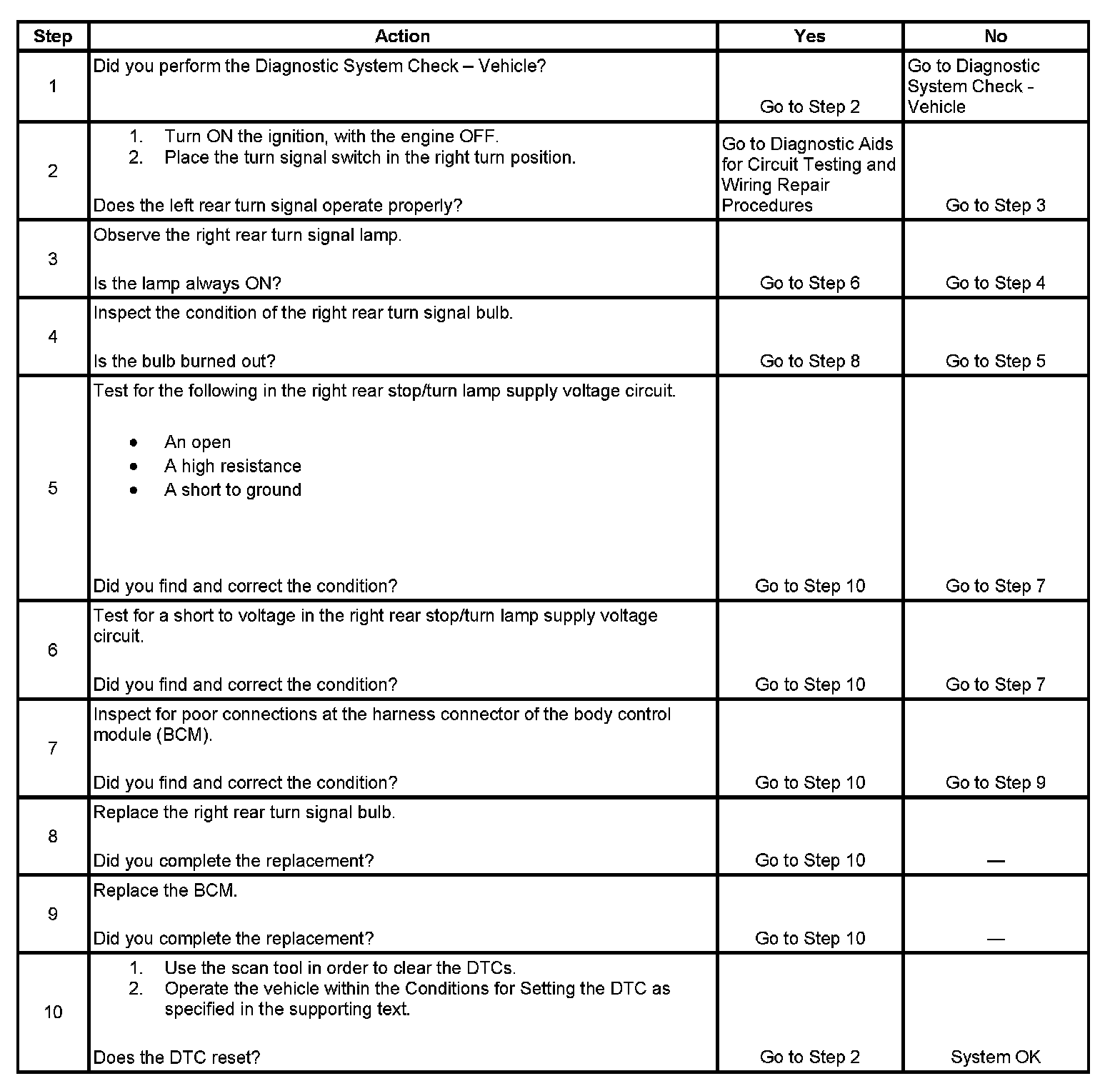 - If the BCM detects continuous voltage on the RR turn signal monitor circuit, the BCM interprets this as a short to voltage. The BCM will continue with normal daytime running lights (DRL) operation, and the RF turn signal will remain inoperative.