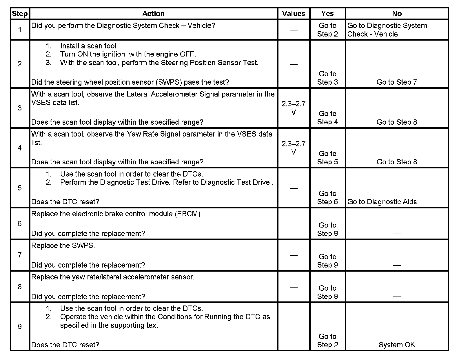 2. Perform the Steering Position Sensor Test in order to verify that the steering wheel position sensor (SWPS) is operating properly.
