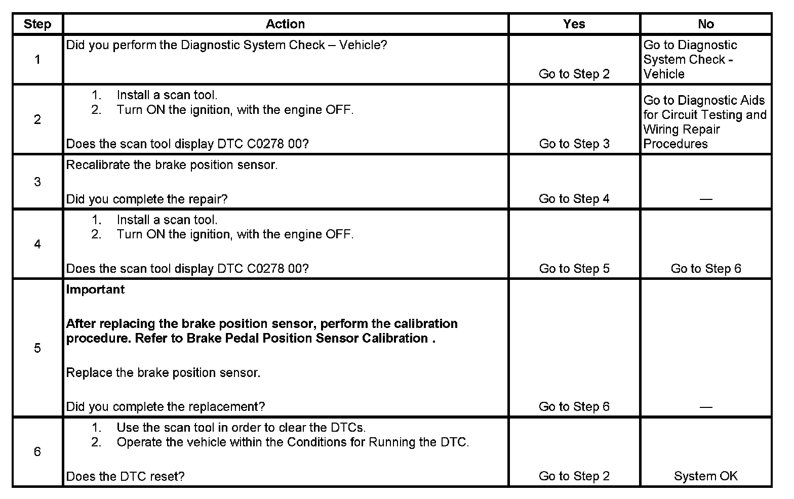 DTC C0278 00: This DTC will set if the brake position sensor is out of calibration.