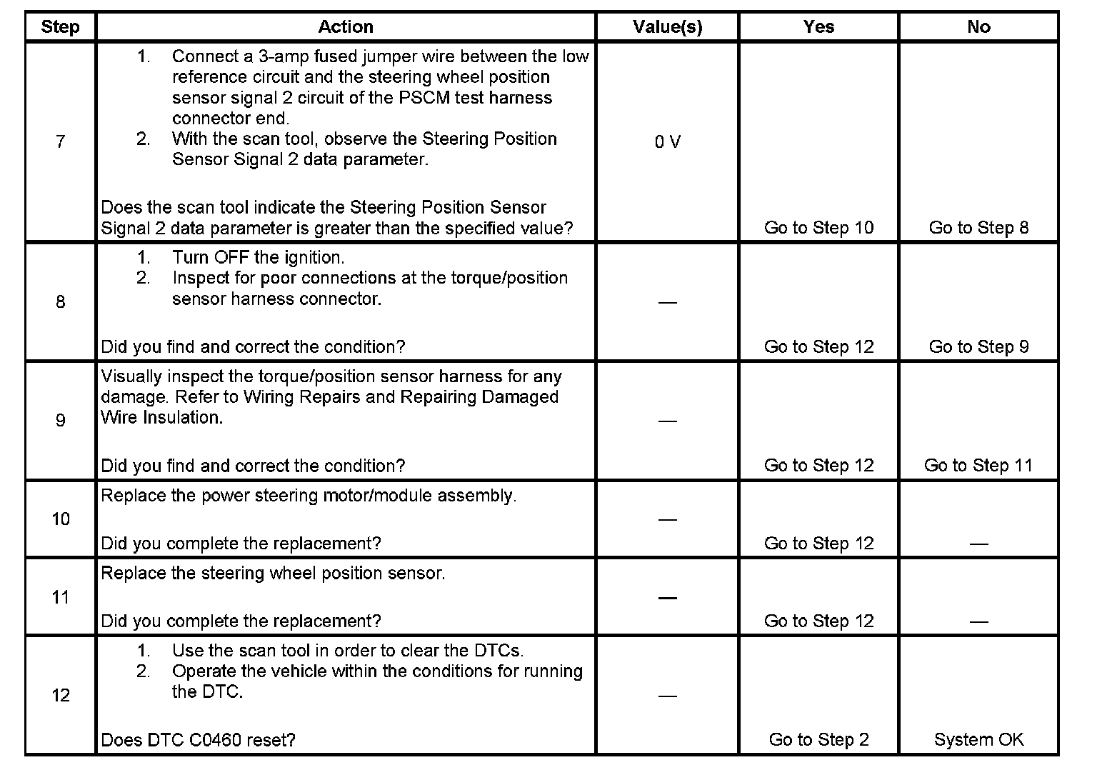 DTC C0460 Steering Position Sensor