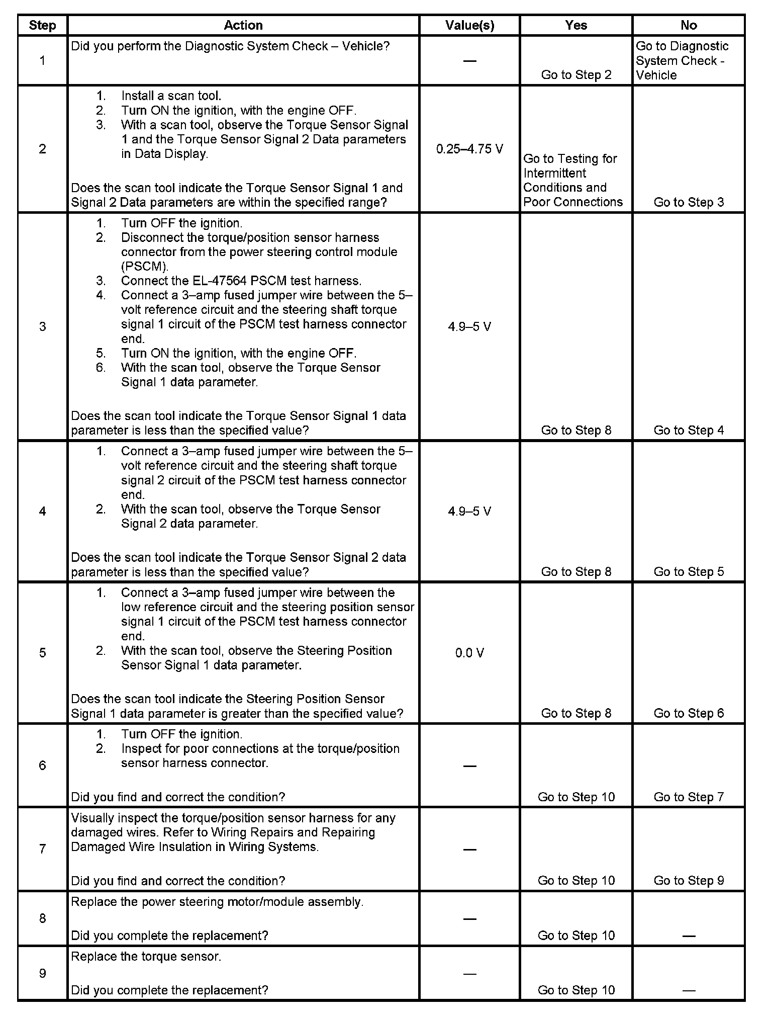 ^ A short to ground, short to voltage, or an open in the torque sensor, or the circuits to the sensor