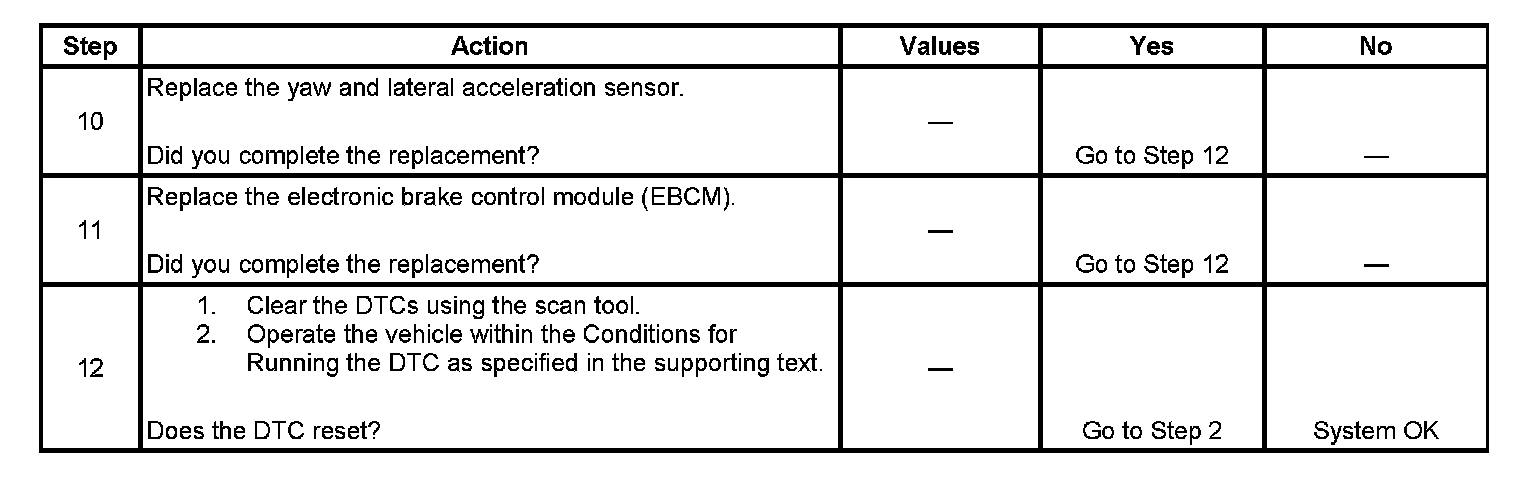 8. This step tests for a problem with the low reference circuit. If a short to voltage exists, other DTC may be set for the vehicle stability system.