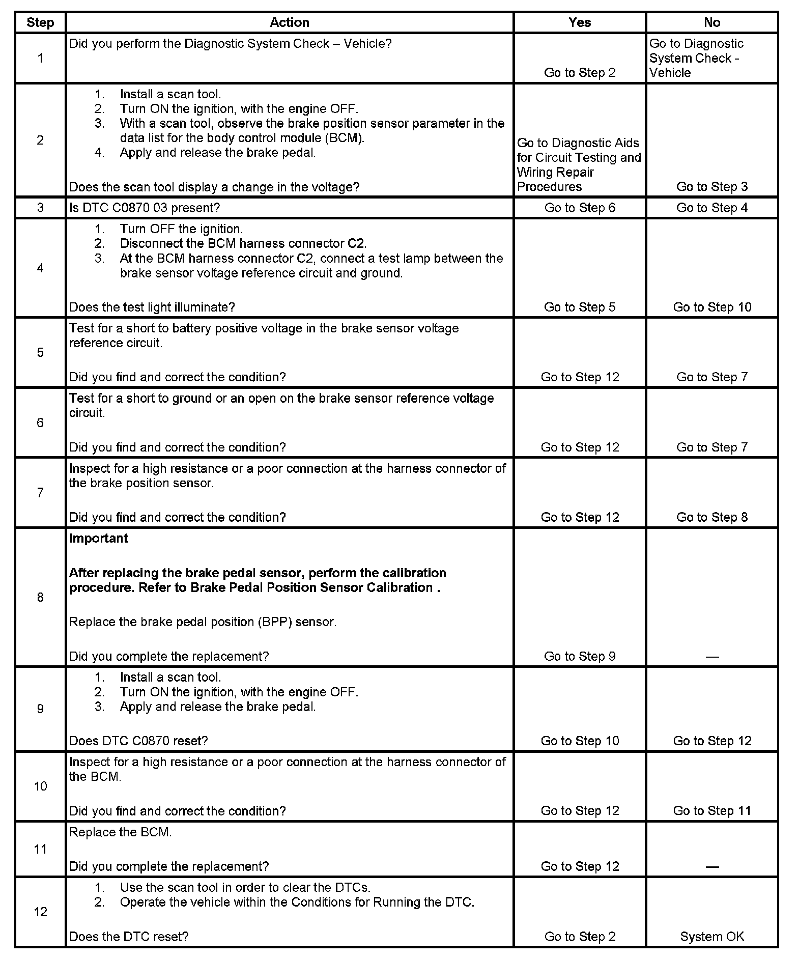 DTC C0870 03: A short to ground or an open in the BPP sensor voltage reference circuit is present.