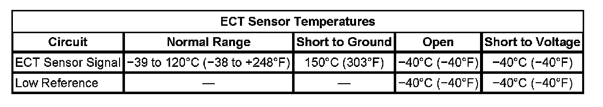 - If a short to a separate voltage source occurs this DTC may set and damage the ECT sensor.