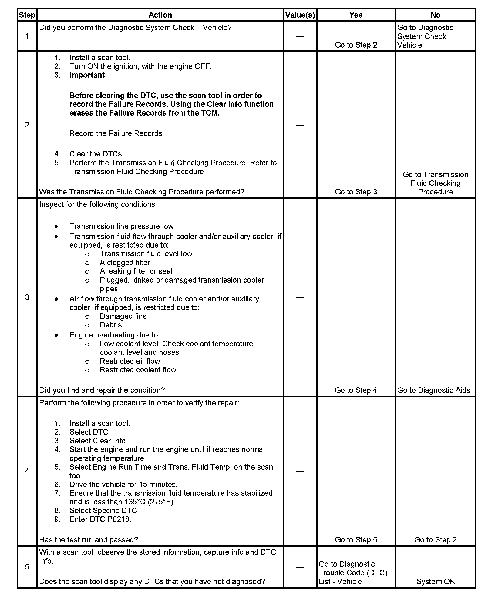 ^ The TCM stores DTC P0218 in TCM history.