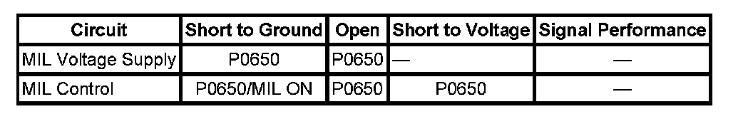 The MIL informs the driver that an emission system fault has occurred and that the engine control system requires service. The control module monitors the MIL control circuit for conditions that are incorrect for the commanded states of the MIL.