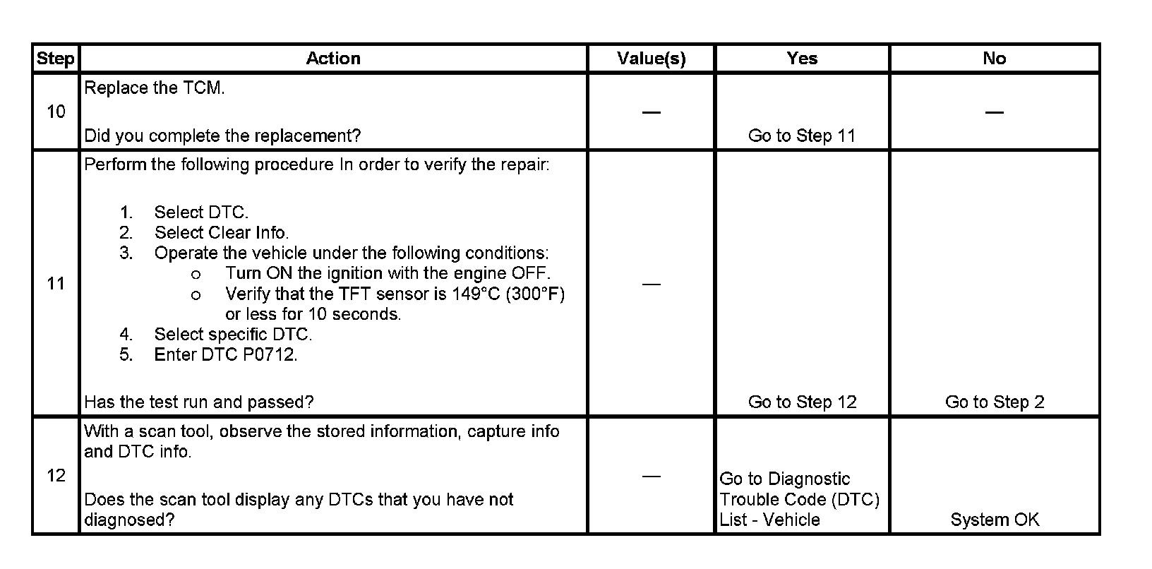 ^ The TCM stores DTC P0712 in TCM history.