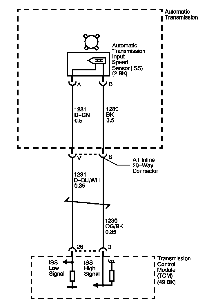 There is a fixed air gap between the sensor and the teeth on the sensor reluctor wheel. The ISS input is used by the transmission control module (TCM) in order to control line pressure, torque converter clutch (TCC) apply and release and transmission shift patterns. This sensor is also used to calculate the appropriate gear ratios and TCC slippage.