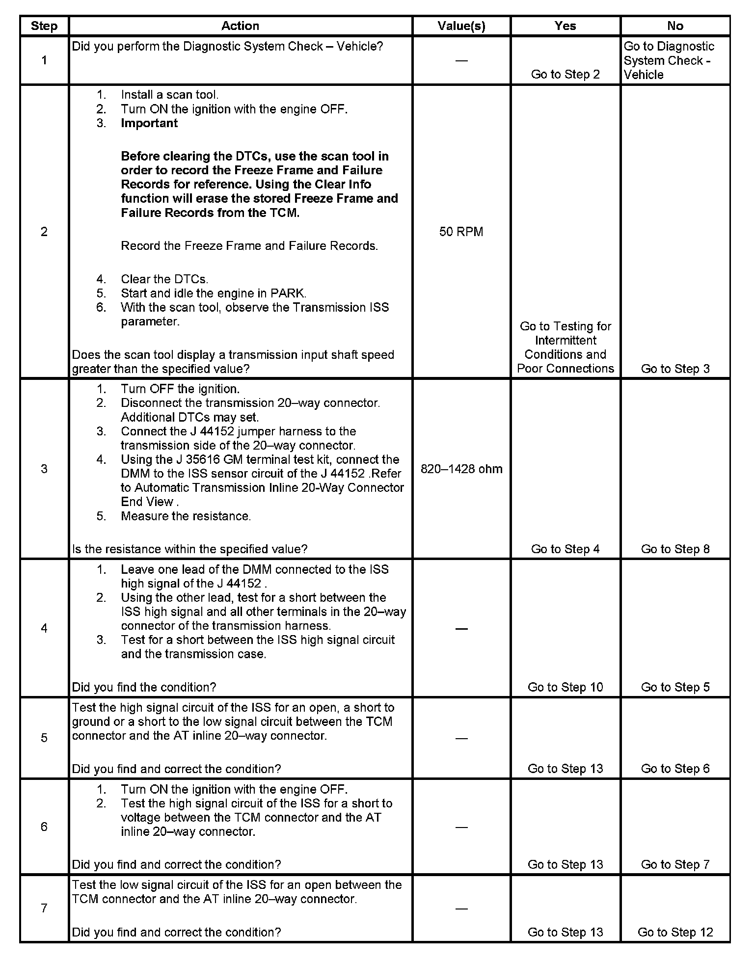 ^ The TCM records the operating conditions when the Conditions for Setting the DTC are met. The TCM stores this information as Freeze Frame and Failure Records.