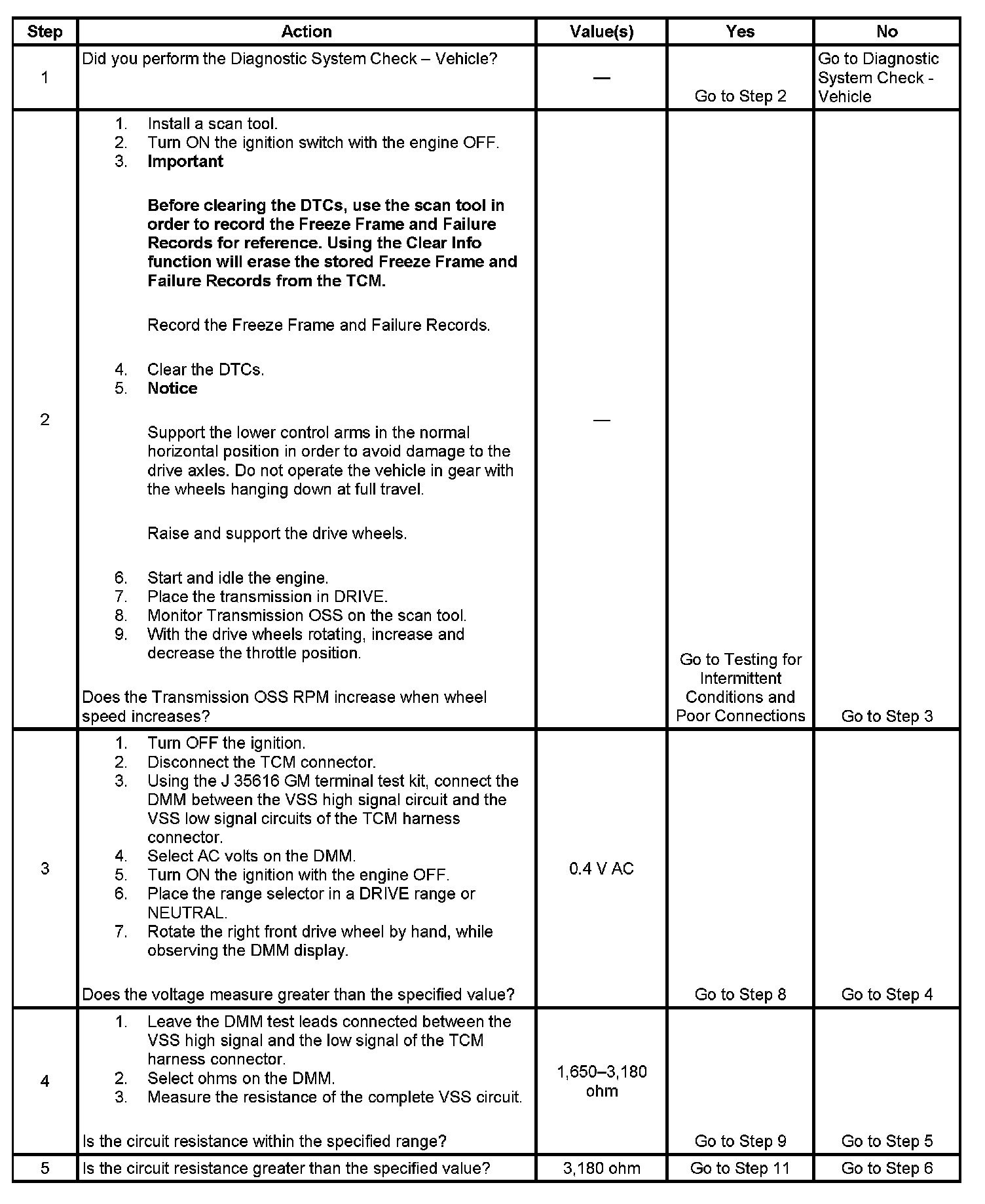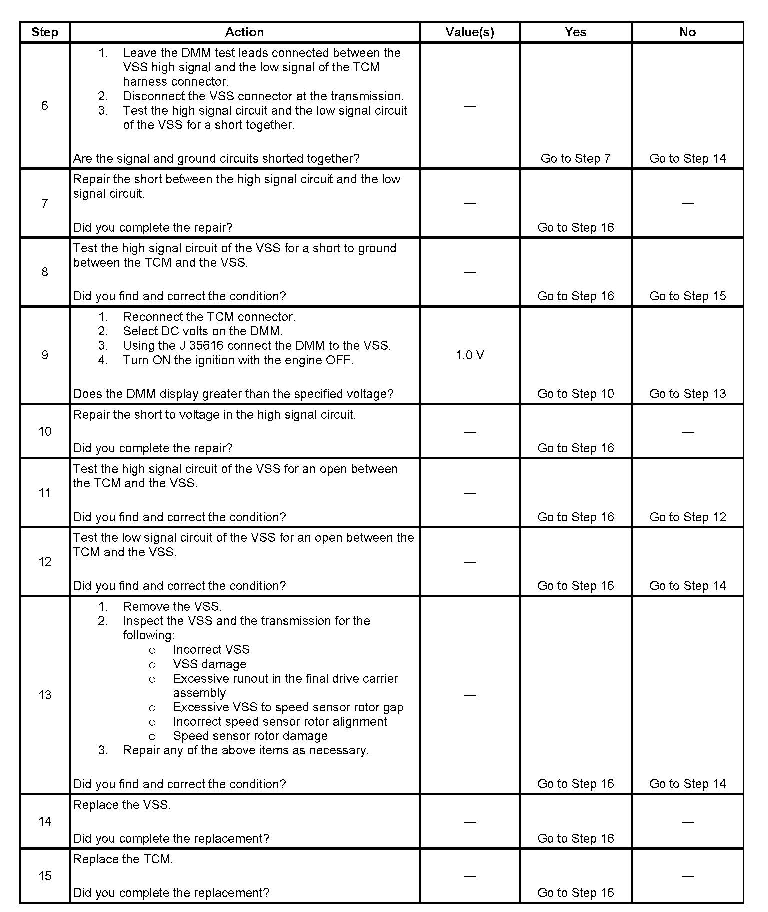 3. This step tests the ability of the VSS to produce an AC voltage. This step also verifies the integrity of the wiring to the TCM.