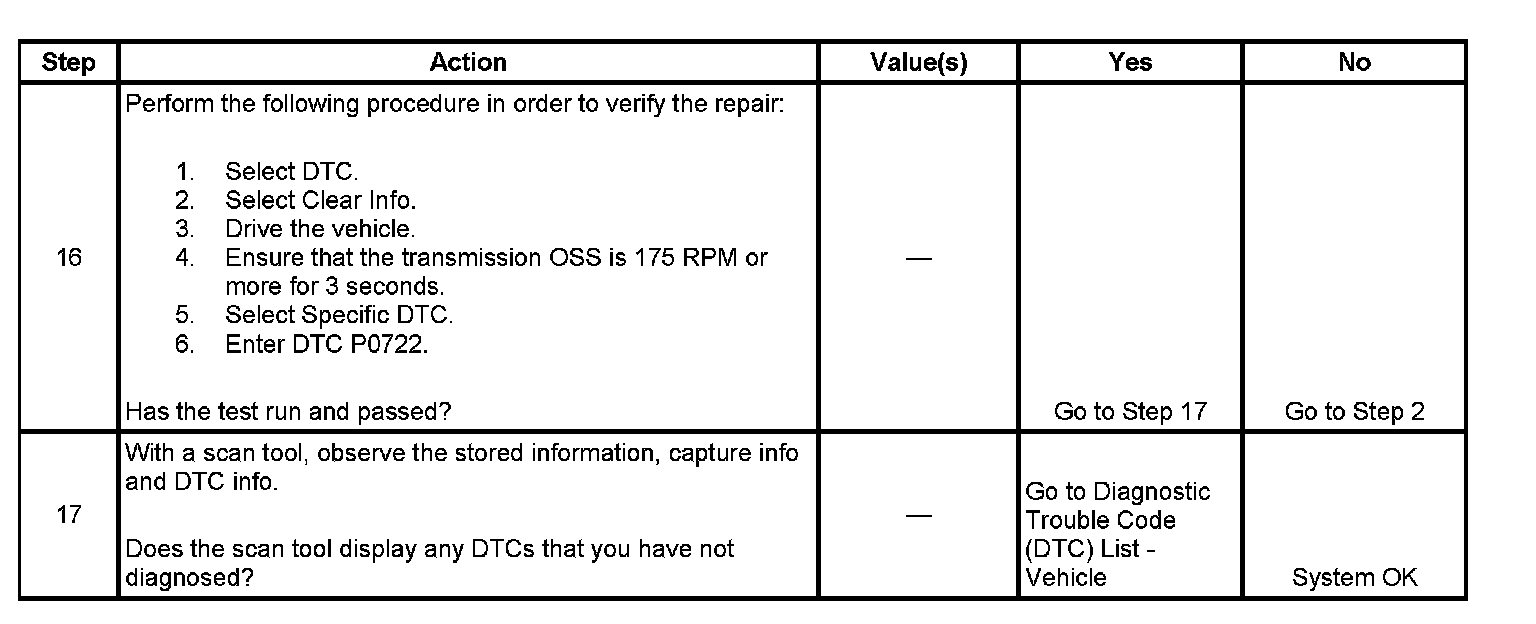 If the TCM detects a low vehicle speed with a high engine speed while in a drive range, then DTC P0722 sets. DTC P0722 is a type B DTC.