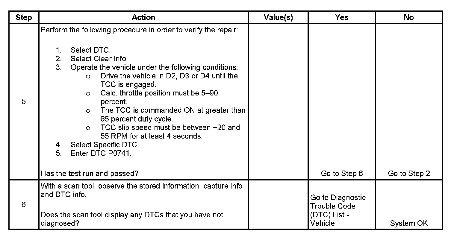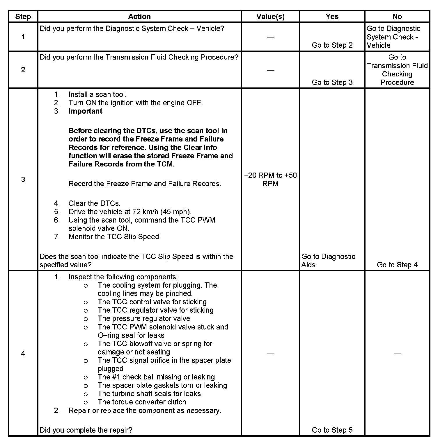 3. This step verifies that the TCC engages when commanded ON by the scan tool.