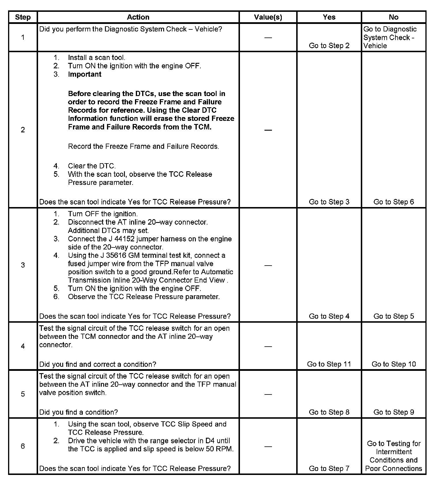 ^ No TCC PWM solenoid valve electrical DTC P2763 or P2764.