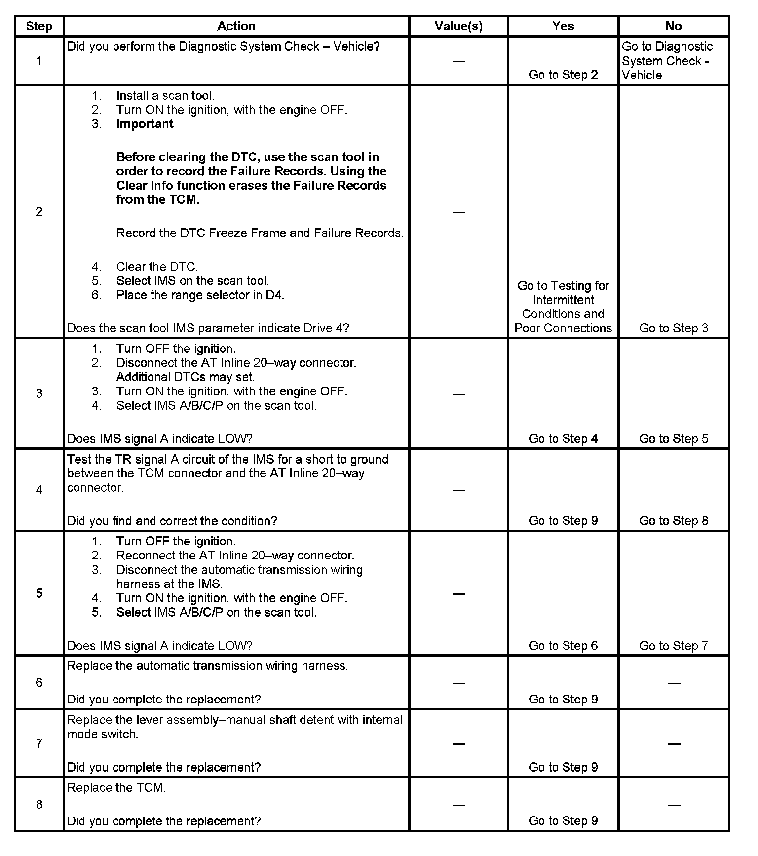 2. The IMS indicates transitional position D4-D3 for 8 seconds or more.