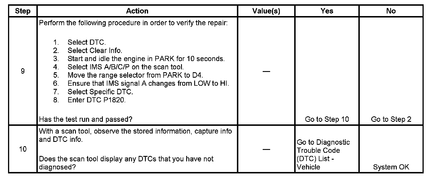 If the TCM detects that IMS Signal A is always low, then DTC P1820 sets. DTC P1820 is a type B DTC.