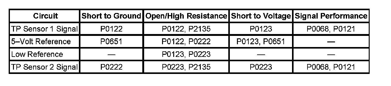 Throttle Position (TP) Sensor 1 Circuit Low Voltage