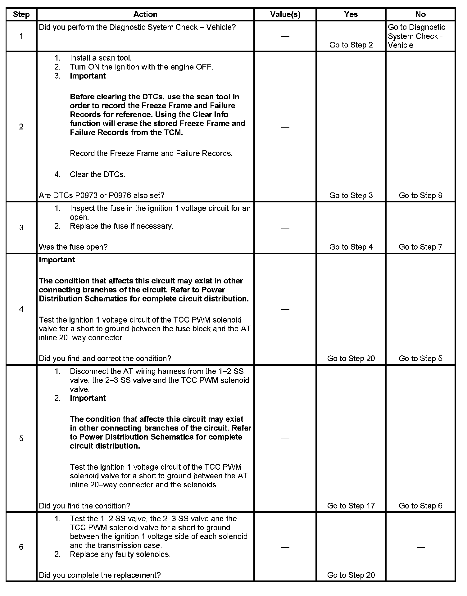 ^ The TCM records the operating conditions when the Conditions for Setting the DTC are met. The TCM stores this information as Freeze Frame and Failure Records.