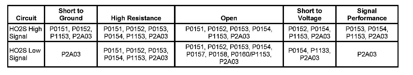 - DTCs P0036, P0054, P0101, P0102, P0103, P0107, P0108, P0112, P0113, P0116, P0117, P0118, P0120, P0125, P0128, P0151, P0152, P0154, P0155, P0201, P0202, P0203, P0204, P0205, P0206, P0220, P0300, P0442, P0443, P0446, P0449, P0451, P0452, P0454, P0455, P0464, P0496, P2153 are not set.