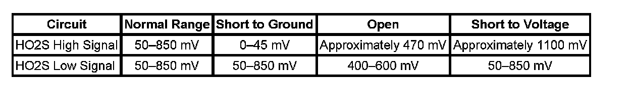 - If more than approximately 450 mV, test the affected HO2S sensor high signal circuit for a short to voltage or a faulty control module.