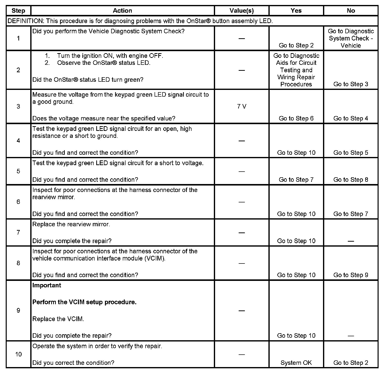ONSTAR BUTTON LED INOPERATIVE