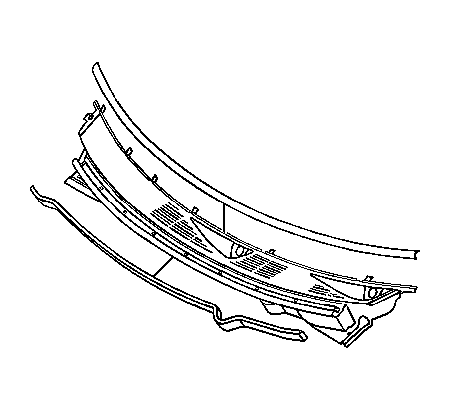 1. Position the air inlet grille panel to the vehicle. Ensure that the lace molding is laying properly on the lower edge of the windshield.