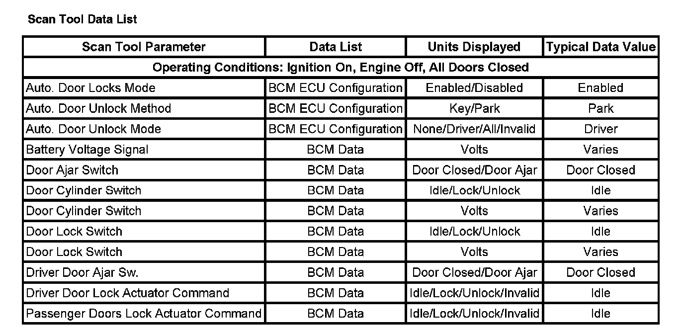 Scan Tool Data List: