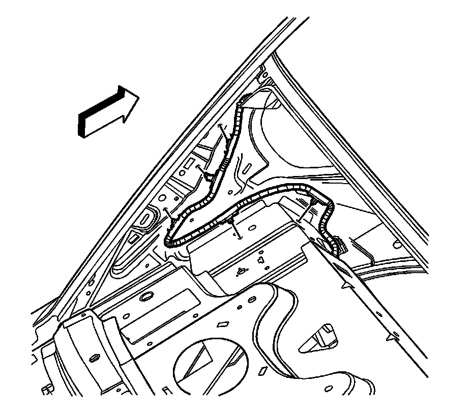 19. Partially remove the door opening weatherstrips. Refer to Weatherstrip Replacement - Front Door Opening (Coupe) Weatherstrip Replacement - Front Door Opening (Convertible) Weatherstrip Replacement - Front Door Opening (Sedan) and Weatherstrip Replacement - Rear Door Opening.