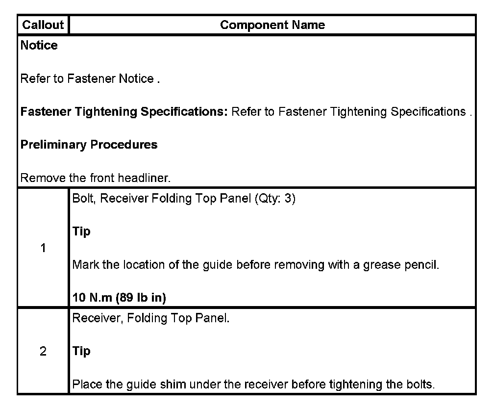 FOLDING TOP LOCATING PIN RECEIVER REPLACEMENT - FRONT