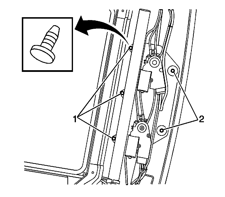 10. Install the bolts (2) in the rear of the sunroof module first, then install bolts (1).