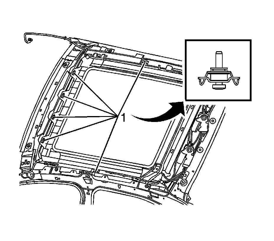 11. Remove the bolts (1) that secure the sunroof module to the roof ring.