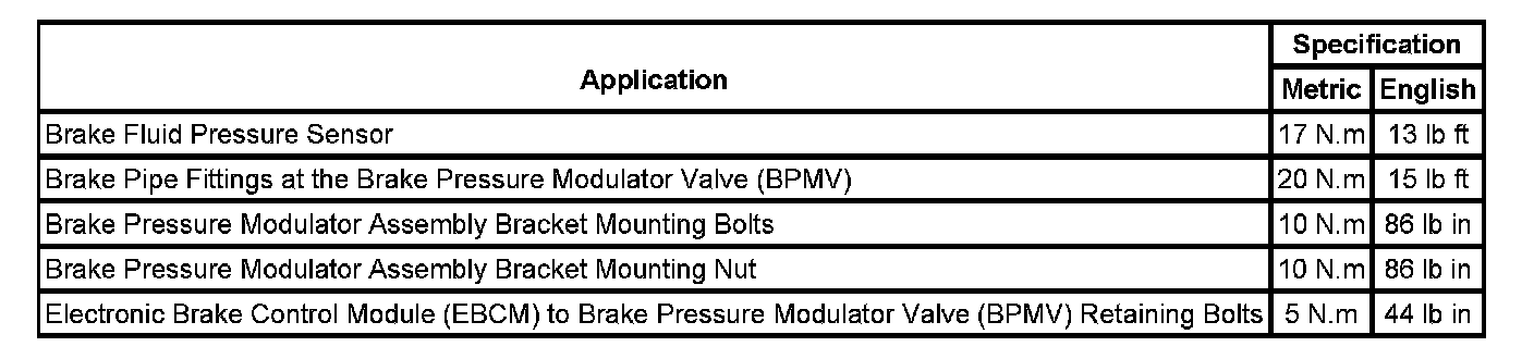 Fastener Tightening Specifications: