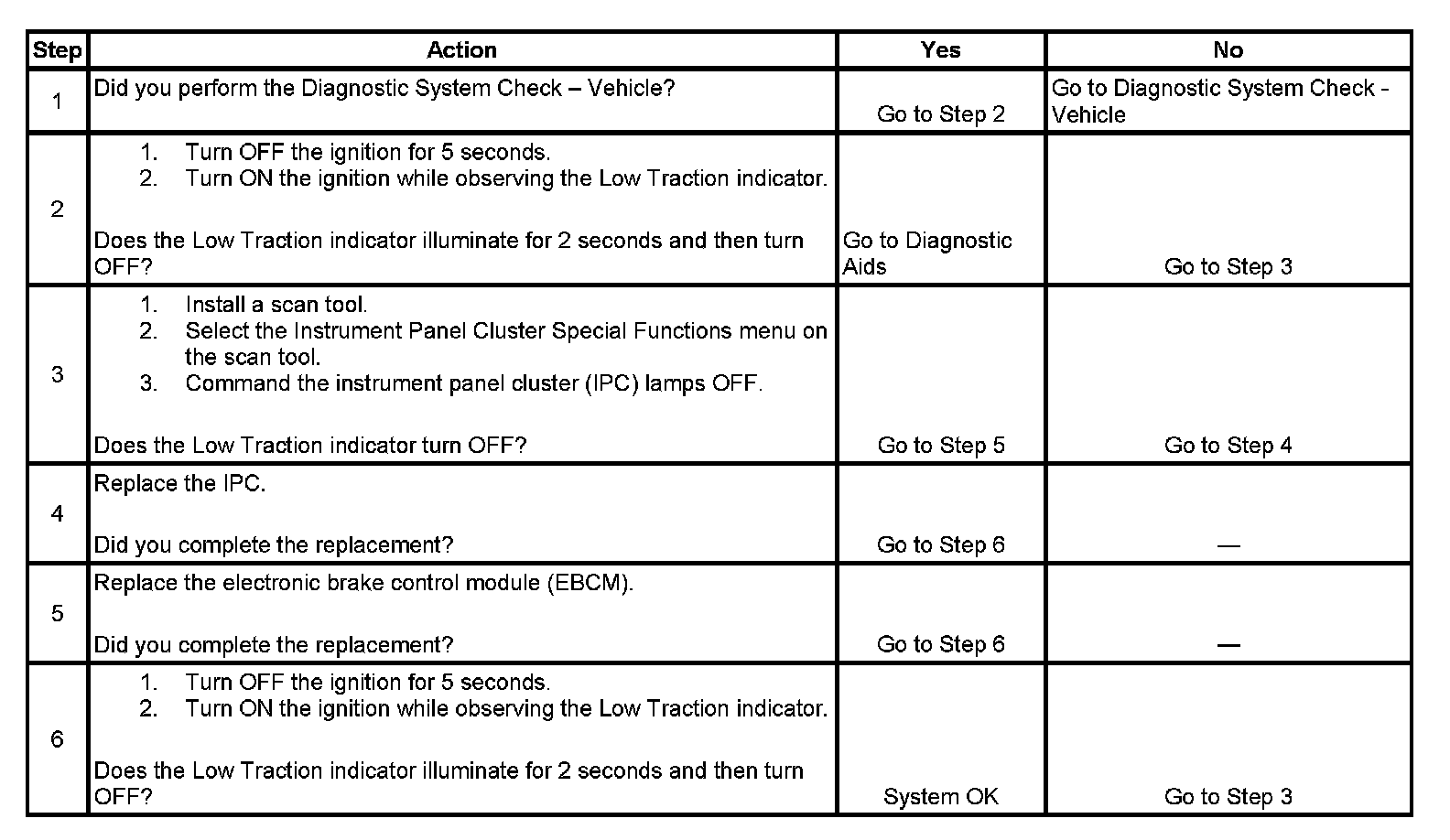 3. This step tests if the instrument panel cluster (IPC) is able to turn OFF the Low Traction indicator.