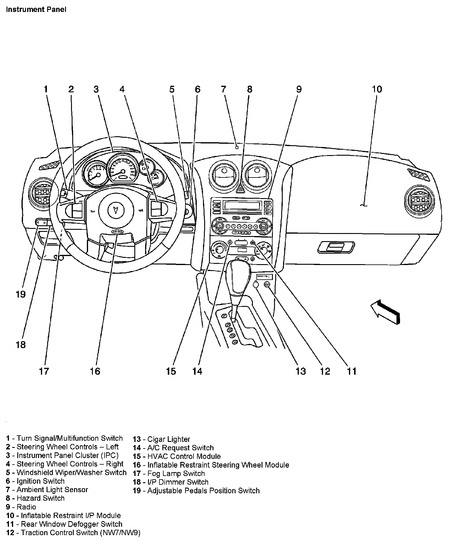 3 - Traction Control Switch or Auxiliary Power Outlet - Front, w/o NW7, NW9