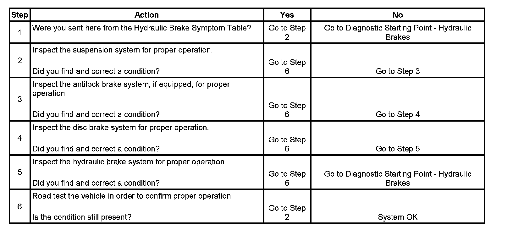 2. Suspension components that are not operating properly may cause a disturbance to the vehicle during application of the brake system.