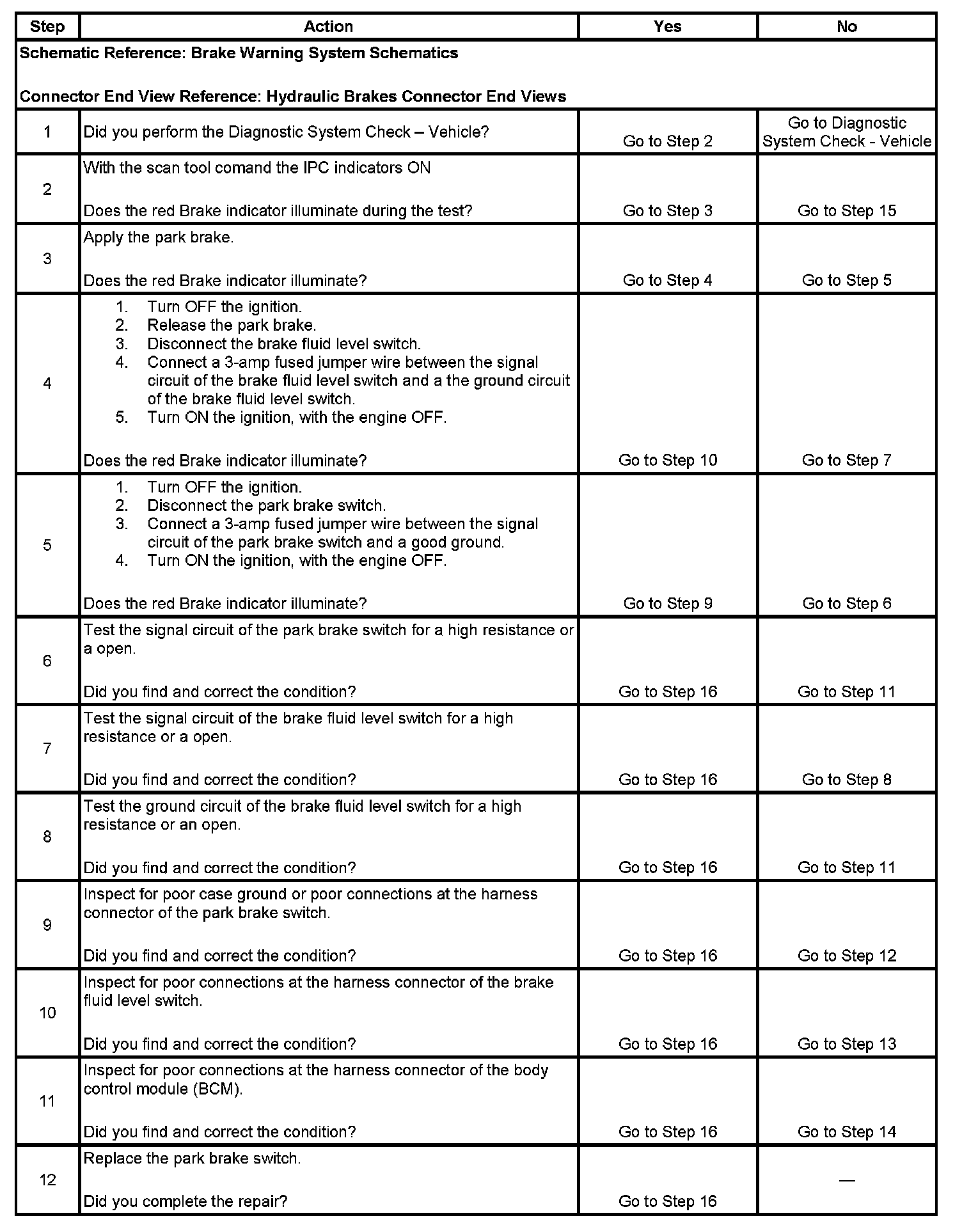 Brake Warning Indicator Inoperative