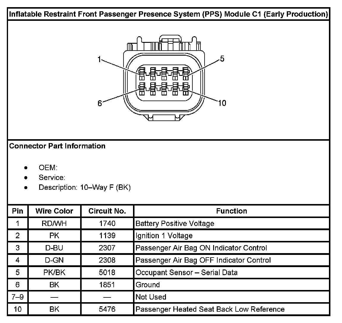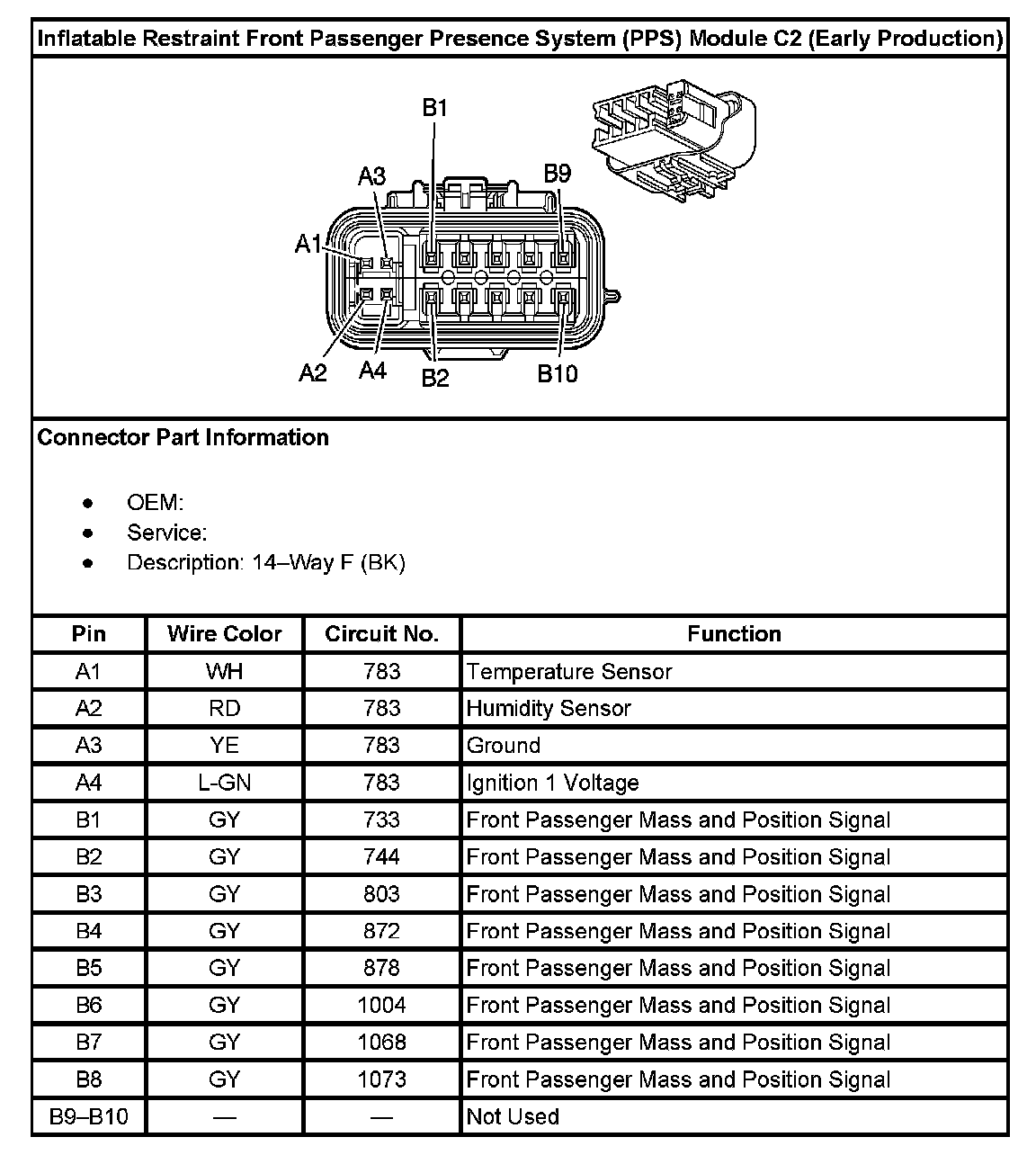 Inflatable Restraint Front Passenger Presence System (PPS) Module C2 (Early Production):