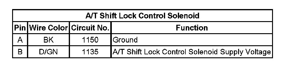 A/T Shift Lock Control Solenoid: