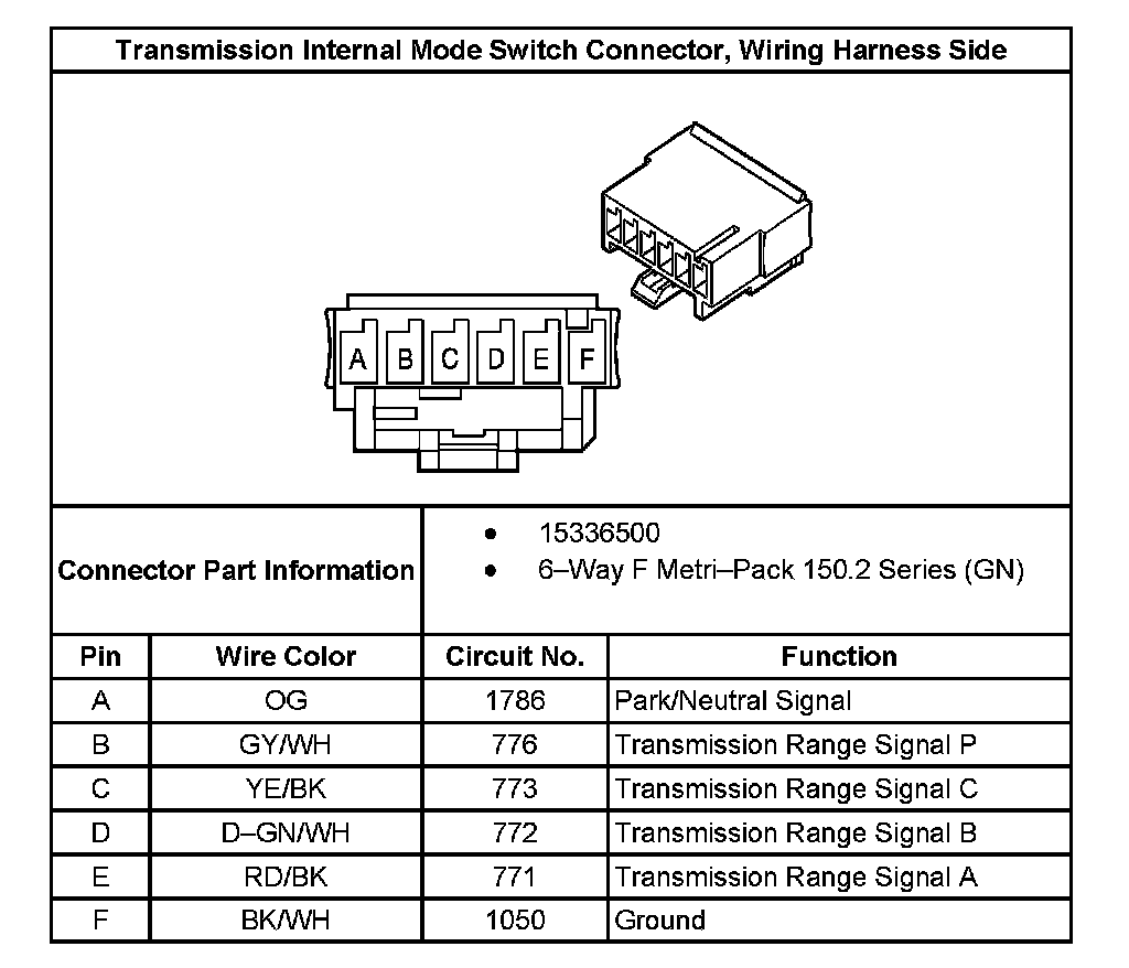 Transmission Internal Mode Switch Connector, Wiring Harness Side: