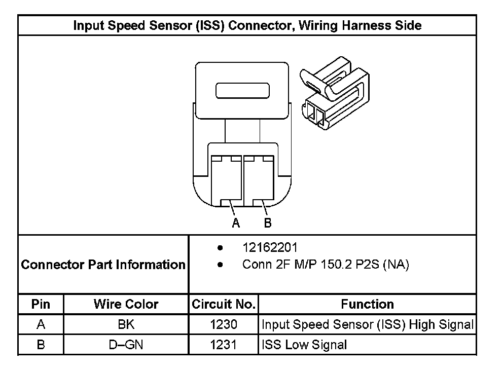 Input Speed Sensor (ISS) Connector, Wiring Harness Side: