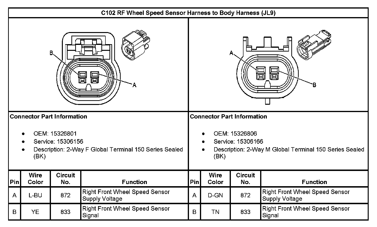 C102 RF Wheel Speed Sensor Harness To Body Harness (With RPO Code JL9):