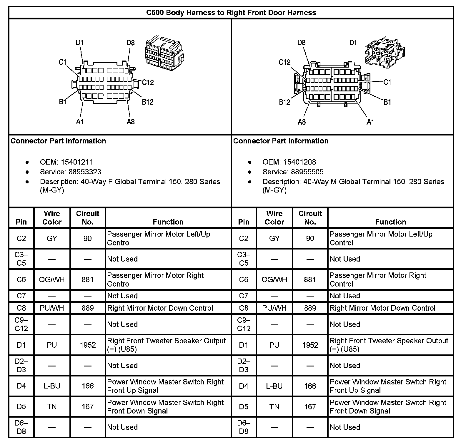 C600 Body Harness To Right Front Door Harness (Part 1):